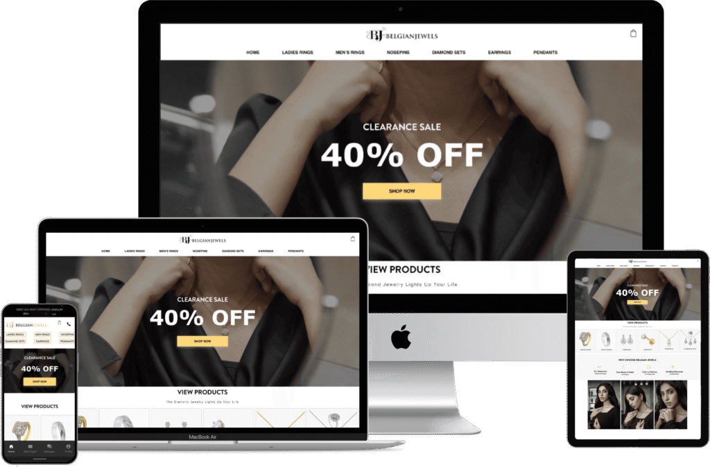 Belgian Jewels is a certified jewelry brand offering European-style gold and diamond pieces online, now available in Pakistan with a clean, responsive e-commerce design to showcase products beautifully.